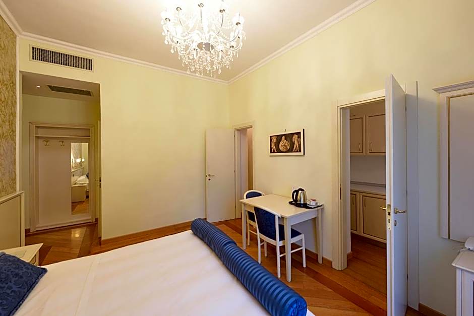 Spacious and elegant room with refined furnishings and frescoed ceilings offering free Wi-Fi. A kitchenette is available on request and at an extra cost. This room is located at ground floor.